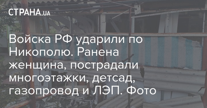Войска РФ ударили по Никополю. Ранена женщина, пострадали многоэтажки, детсад, газопровод и ЛЭП. Фото