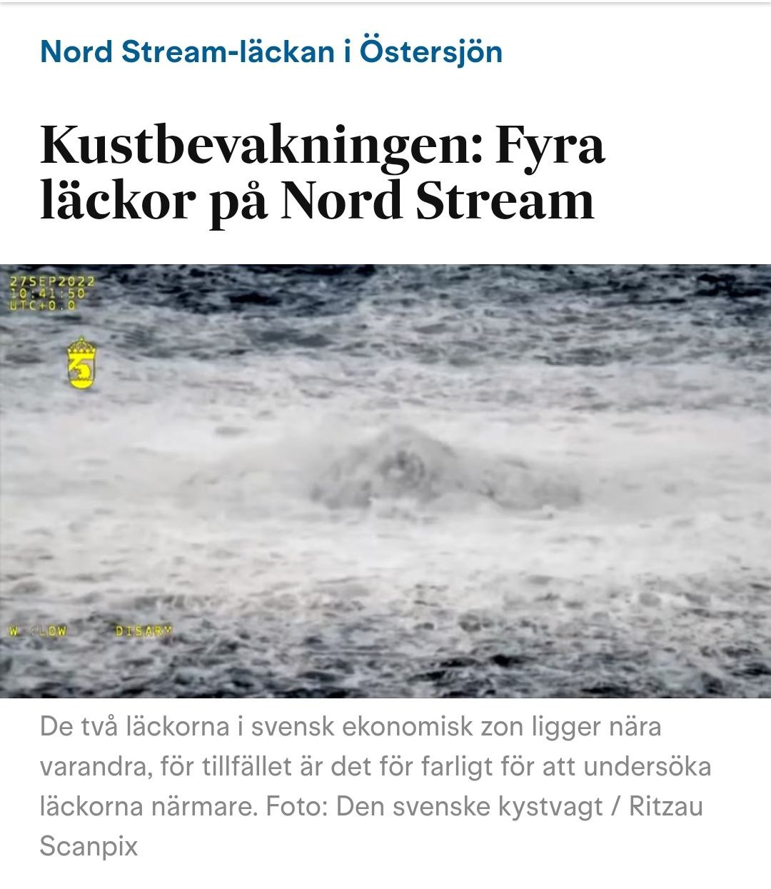 Береговая охрана Швеции обнаружила ещё одну - четвертую - утечку газа на "Северных потоках". Две утечки находятся в шведской морской зоне.
