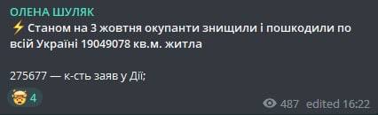 Украинцы подали через приложение "Дия" 275677 заявок по факту повреждений жилья.