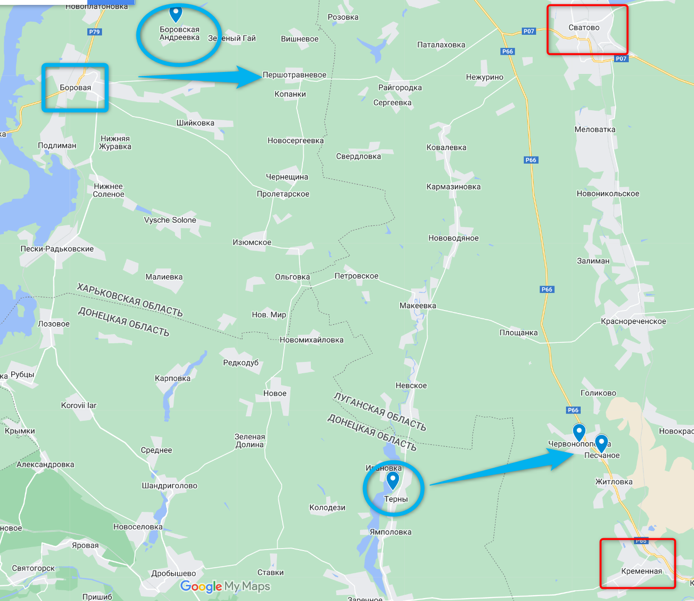 Севернее, на левом берегу реки Оскол и к западу от Сватово, украинские войска вошли в село Боровская Андреевка Харьковской области. То есть там армия приближается к границам Луганской области.