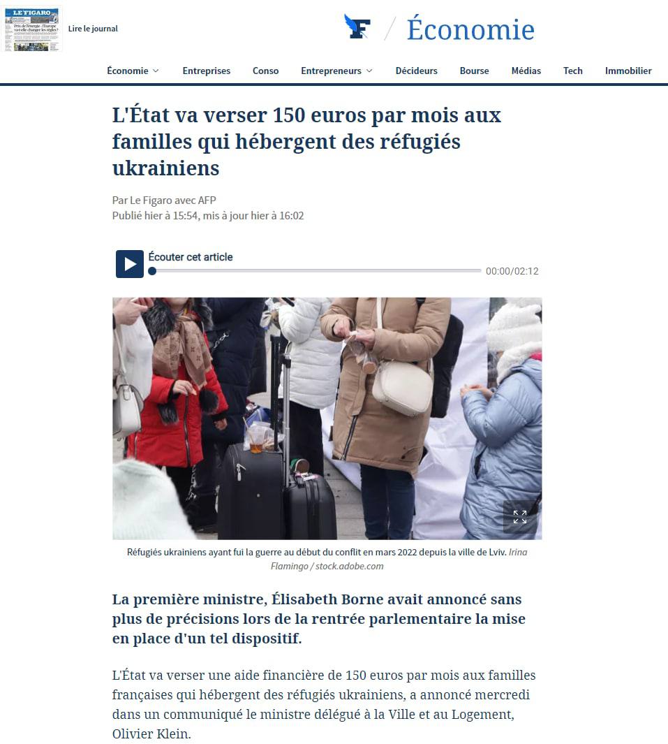 Французским семьям будут платить за прием беженцев из Украины по 150 евро в месяц. По программе деньги смогут получить от 5000 до 12 000 семей.