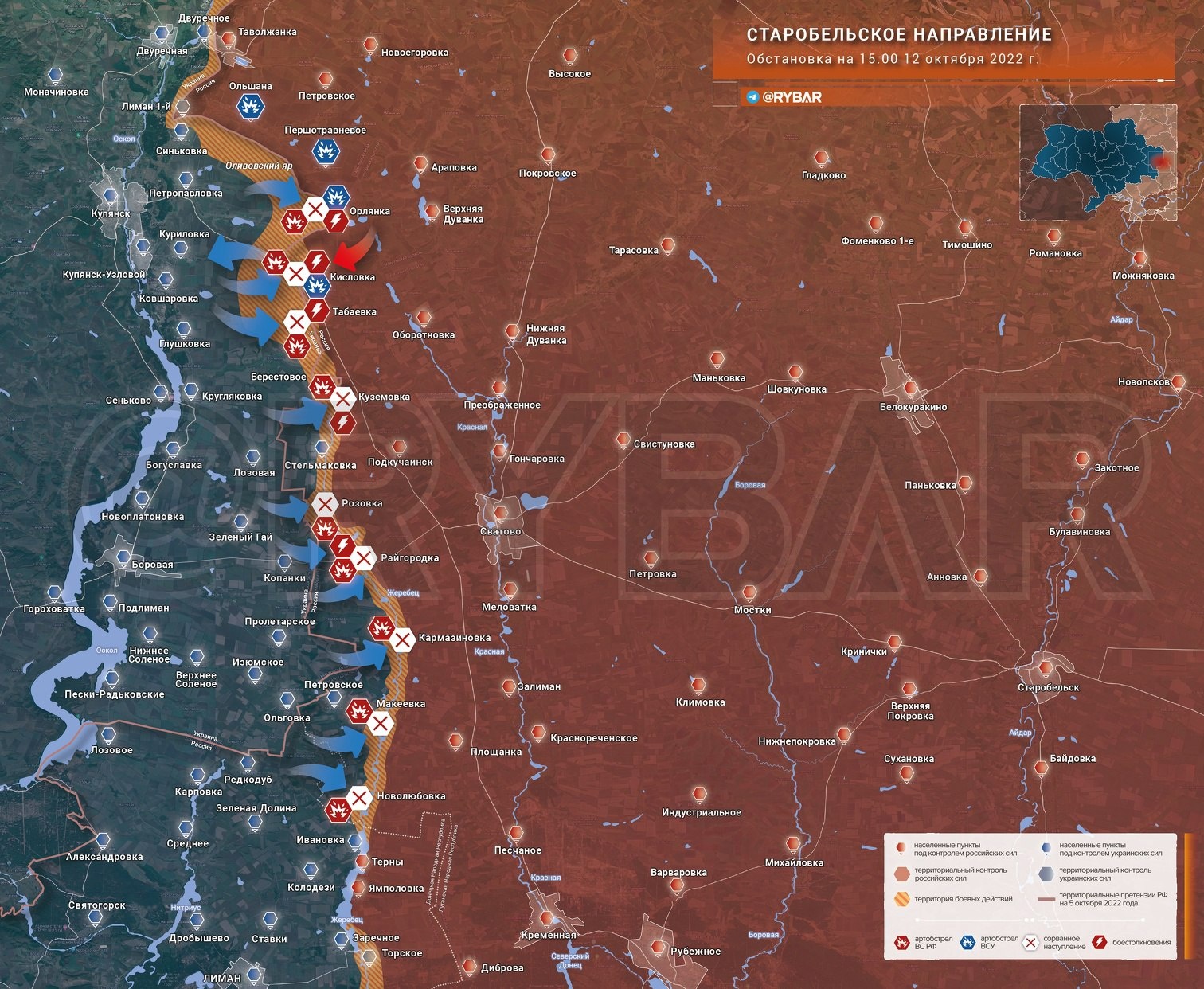Карта боев на лиманско-купянском направлении по версии российских телеграм-каналов