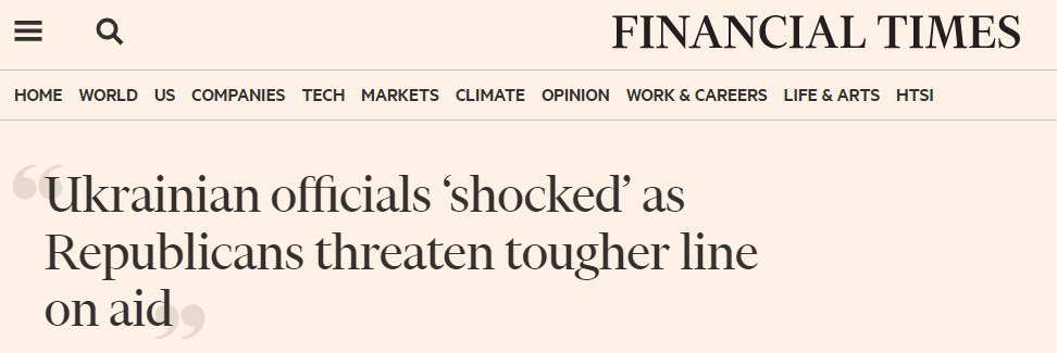 Украинские власти были шокированы предупреждением республиканцев, что они прекратят неограниченную помощь Украине в случае победы на ноябрьских выборах.