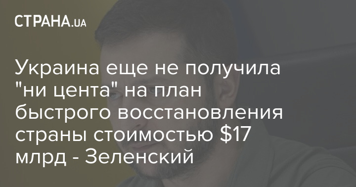 Украина еще не получила "ни цента" на план быстрого восстановления страны стоимостью $17 млрд - Зеленский