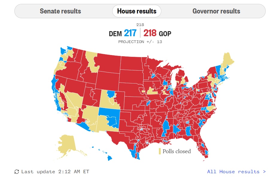 Подсчет еще идет. Но из стана республиканцев уже идут заявления, что партия возвращает контроль над Палатой представителей.