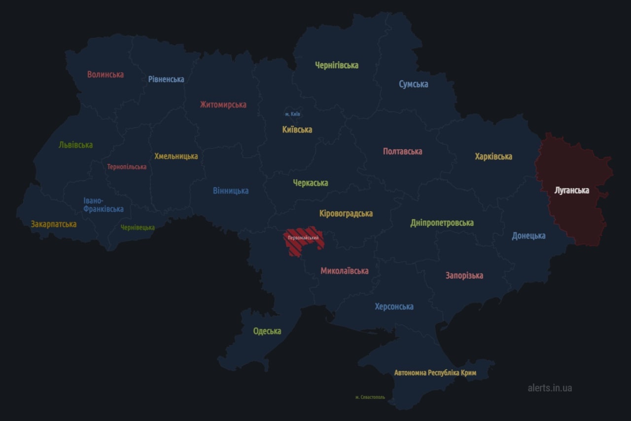 14.30 Воздушная тревога во всех областях кроме Крыма.