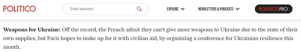 11.30 Франция не может поставлять больше оружия Украине из-за истощения своих собственных запасов, но Париж надеется компенсировать это гражданской помощью, организовав в декабре конференцию по украинской устойчивости, сообщает Politico со ссылкой на источники.