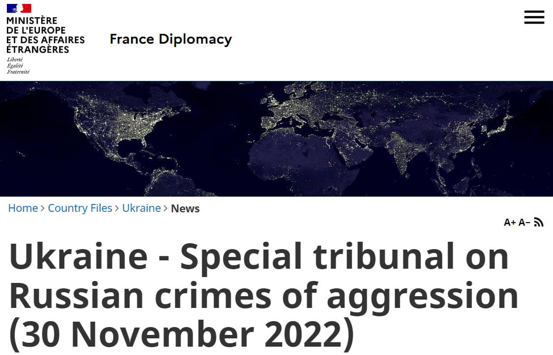 11.45 МИД Франции сообщает о начале работы над созданием спецтрибунала по преступления РФ против Украины.