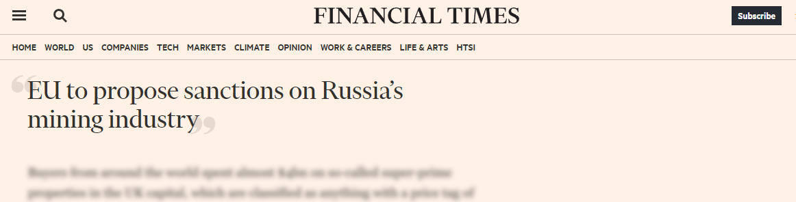 Еврокомиссия хочет запретить инвестиции в горнодобывающий сектор РФ.