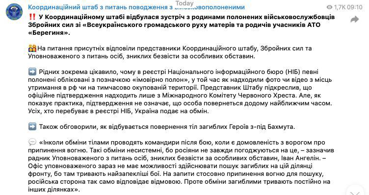 Представители ВСУ и уполномоченного по вопросам лиц пропавших без вести встретились с родственниками пропавших без вести и пленных украинских военных.