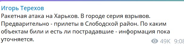 РФ ударила по Харькову ракетами, зафиксированы прилеты. В городе остановилось метро