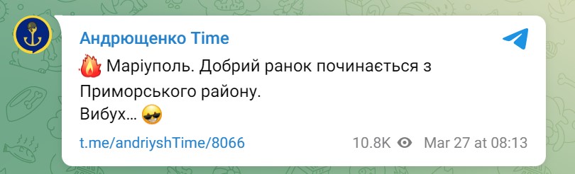 В понедельник, 27 марта, в Мариуполе Донецкой области и Мелитополе Запорожской области прогремели взрывы.