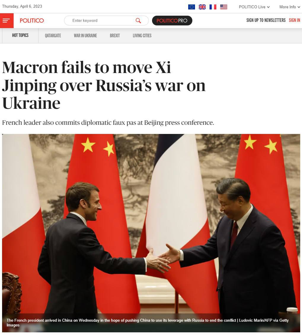 Также члены окружения Си заметили, что Макрон говорил в два раза больше хозяина встречи, что может восприниматься как дипломатическая оплошность со стороны Макрона, отмечает Politico.