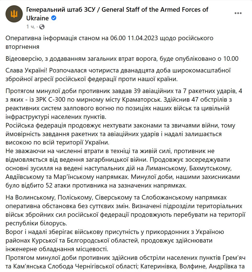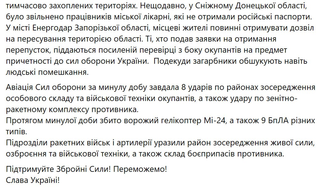 Противник нанес 39 авиационных и 7 ракетных ударов. Фото: facebook/GeneralStaff.ua