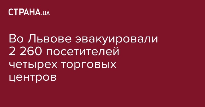 После вчерашнего сообщения о минировании четырех торговых центров во Львове эвакуировали 2 260 человек. Об этом сообщили в пресс-службе департамента гражданской защиты Львовской ОГА.
