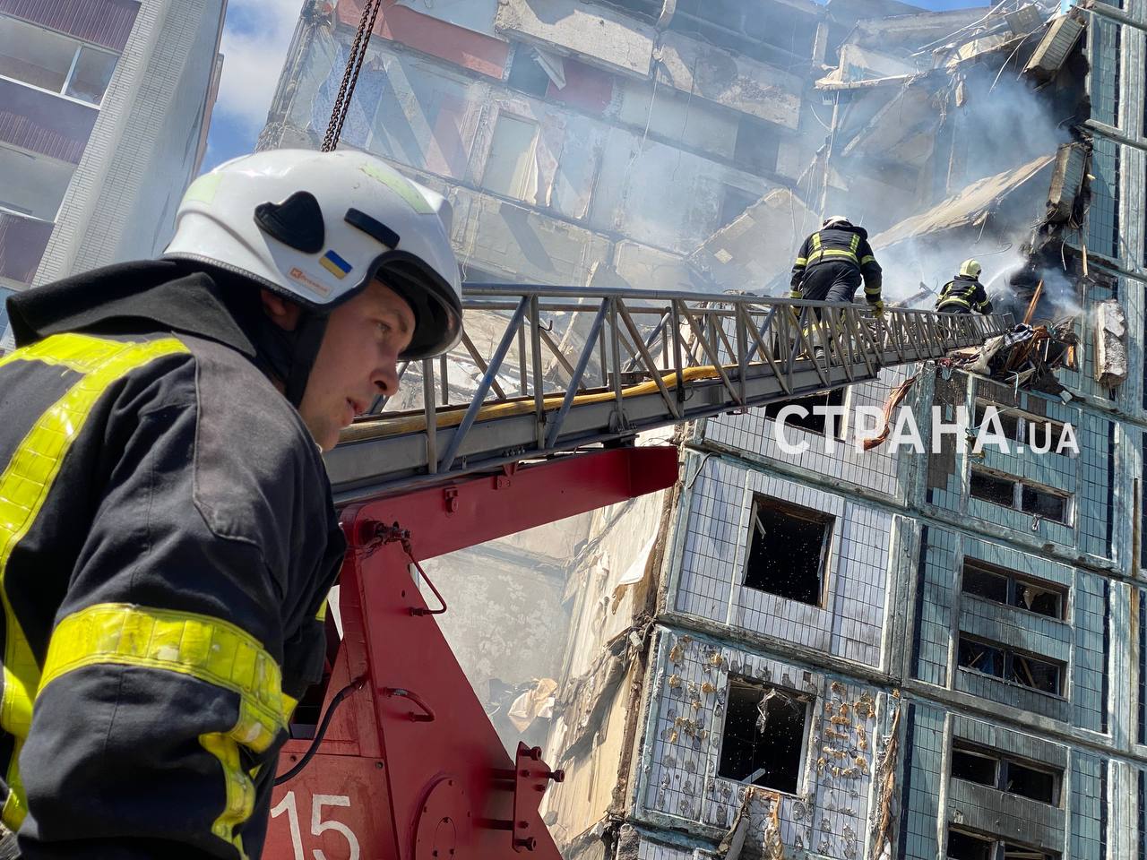 В Умани Черкасской области спасатели продолжают разбирать завалы жилого дома, разрушенного в результате ракетного удара. По последним данным, погибли 14 человек.