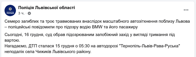 Пьяный за рулём убил семь человек. Фото – facebook.com/MVS.LVIV