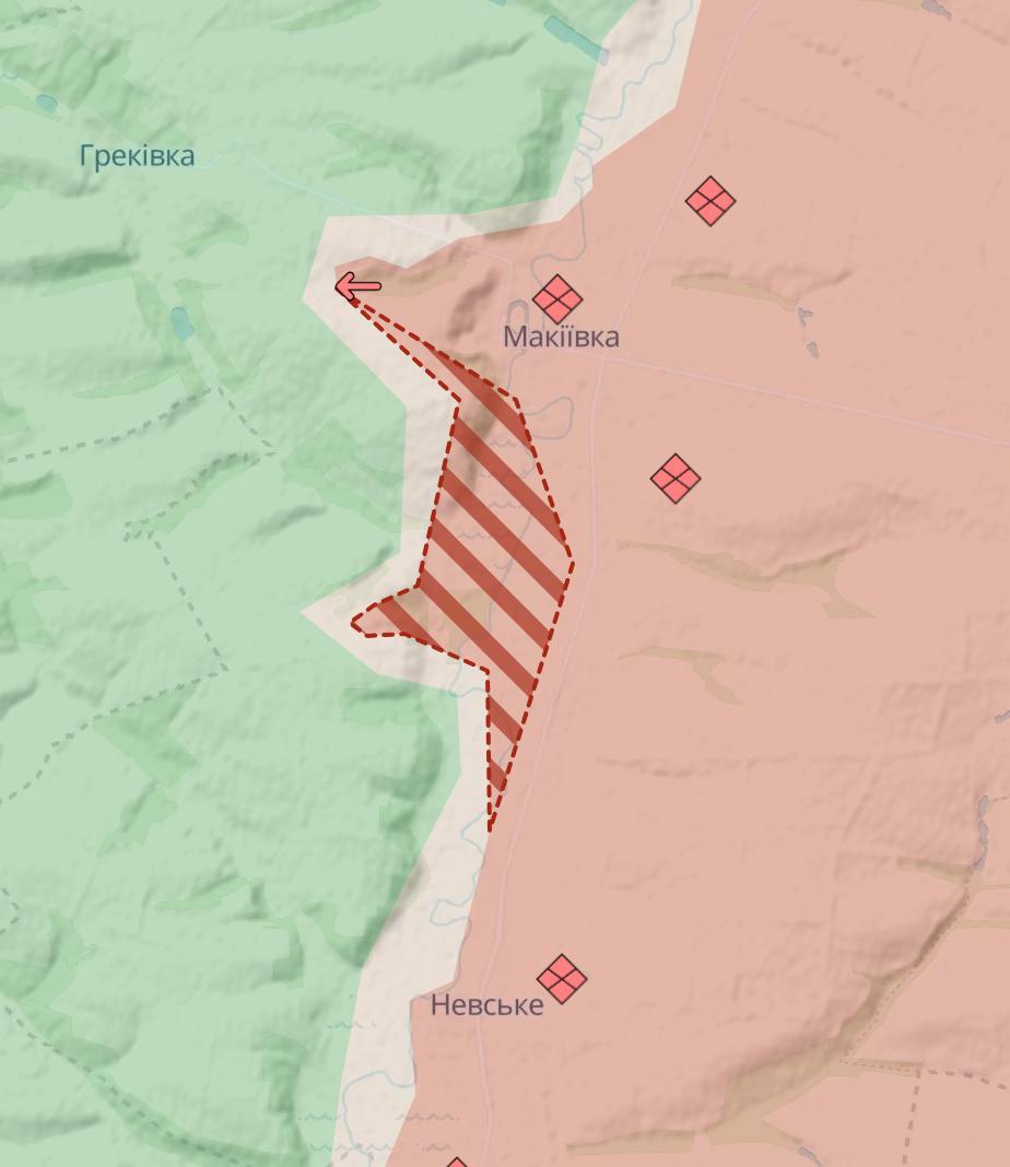 Южнее Покровска россияне стремятся приблизиться к границам Днепропетровской области со стороны сел Срибное и Запорожье, где у них также есть продвижение на запад. Deep State пишет, что на этом участке, вопреки ожиданиям, войска РФ двинулись не южнее, а западнее, к селу Ореховому на границе двух регионов.