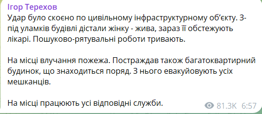 Также был прилёт по объекту инфраструктуры в Харькове. Пострадали пять человек.