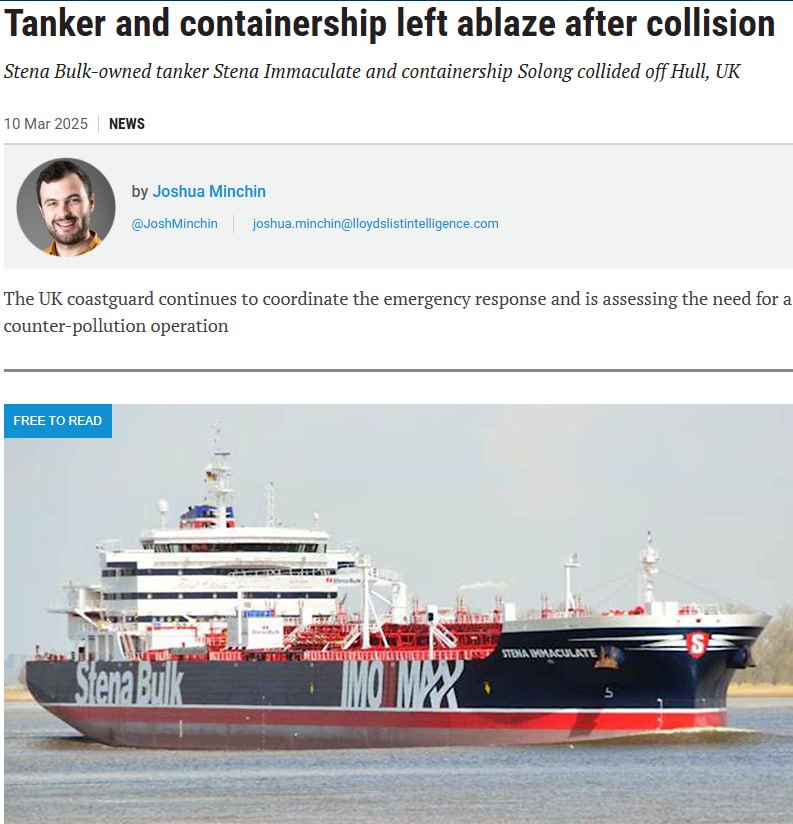 Контейнеровоз с грузом цианистого натрия врезался в танкер с топливом под флагом США у берегов Британии. Видео