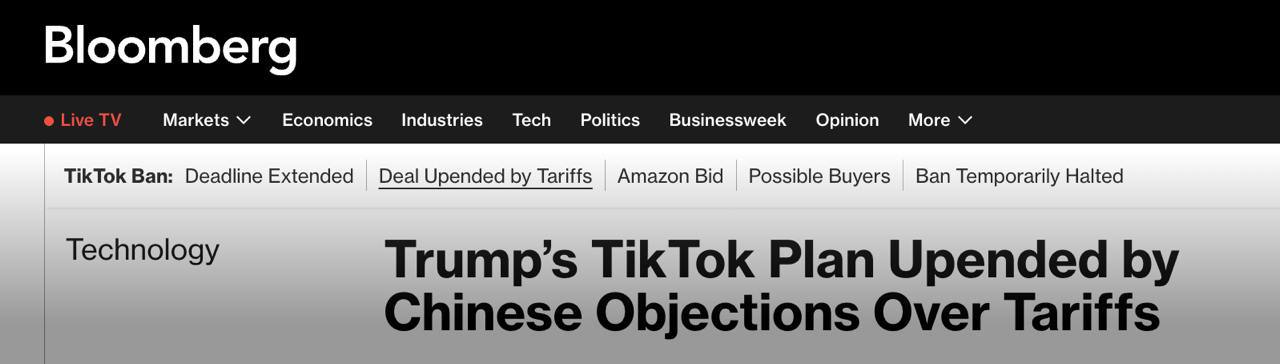 Китайская компания ByteDance Ltd. отклонила сделку о продаже своей соцсети TikTok американским представителям после того, как президент США Дональд Трамп ввёл пошлины против остальных стран мира.