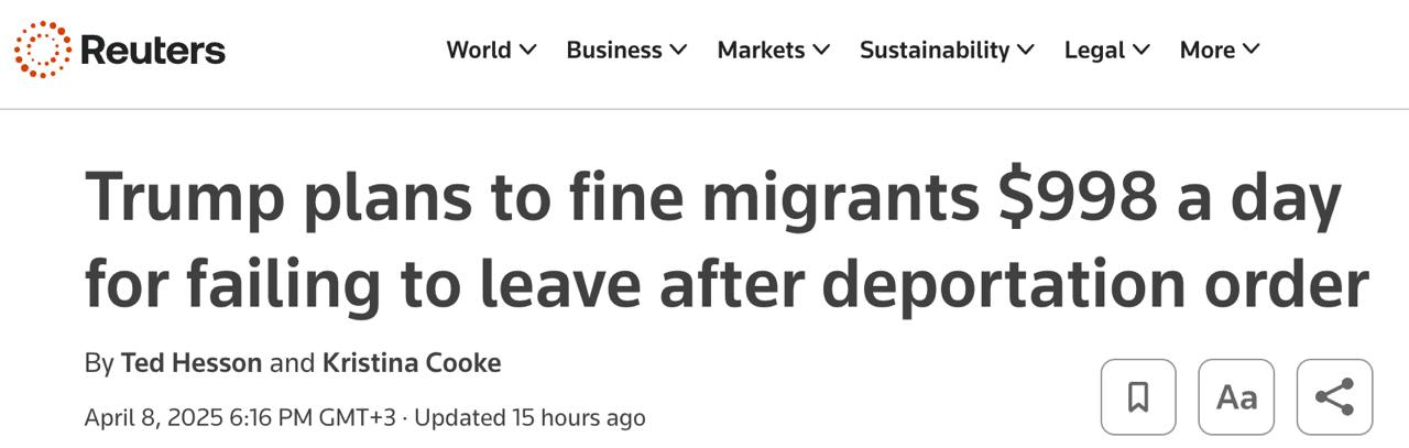 Министерство внутренней безопасности отмечает, что штрафы введены с 31 марта и могут коснуться примерно 1,4 миллиона мигрантов, которые были депортированы по решению иммиграционного судьи.