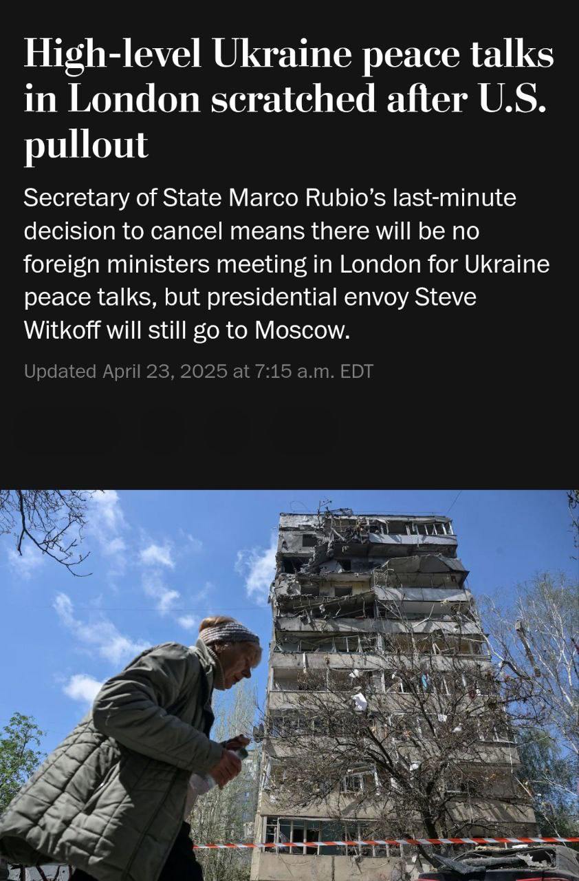 Тем временем Reuters со ссылкой на источник, близкий к переговорам, пишет, что встреча министров в Лондоне сорвалась после того, как во вторник "Украина подготовила документ для европейцев, в котором заявила, что не будет никаких обсуждений территориальных вопросов до полного и безоговорочного прекращения огня".
