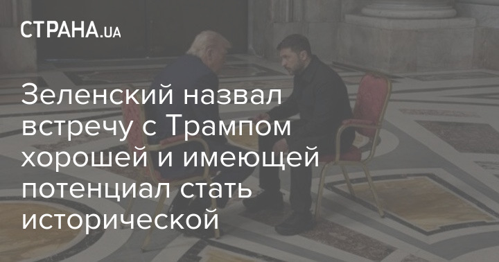 Президент Украины Владимир Зеленский назвал встречу с американским лидером Дональдом Трампом накануне похорон папы римского Франциска "хорошей и символической, имеющей потенциал стать исторической".