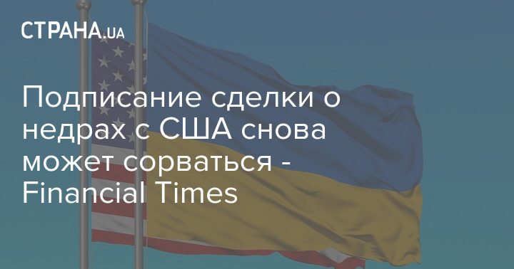 Подписание сделки о недрах с США еще может сорваться в последний момент. Об этом пишет Financial Times со ссылкой на источники.