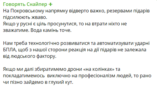 Боец "Айдара" Станислав Бунятов заявил, что "на Покровском направлении откровенно тяжело", россияне усиливаются резервами.