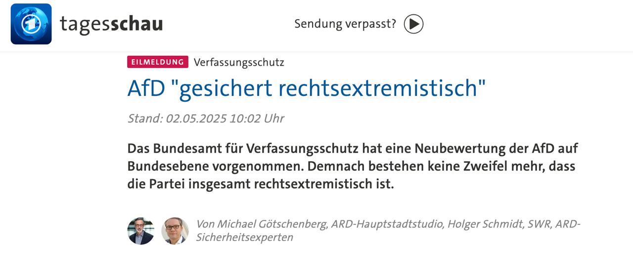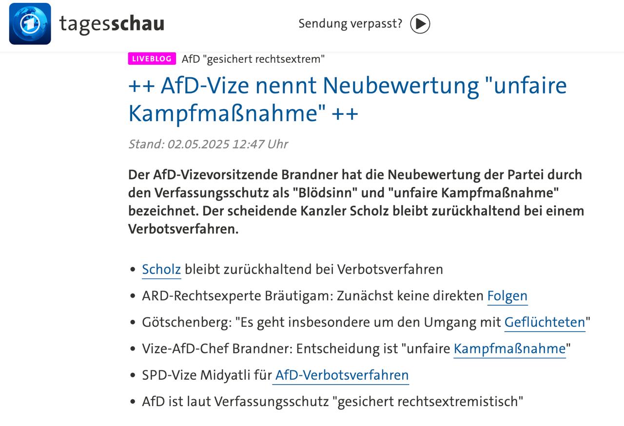 Тем временем замглавы АдГ Бранднер назвал решение Федерального ведомства по охране конституции "полной чушью по содержанию", заявив, что оно "не имеет никакого отношения к правопорядку и является чисто политическим в борьбе картельных партий против АдГ".
