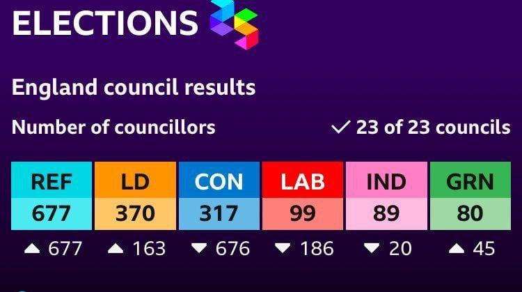 Как можно видеть по результатам голосования, правящие лейбористы на муниципальных выборах показали худший результат в истории, а Консервативная партия утратила контроль над всеми ранее контролируемыми ею городскими советами.