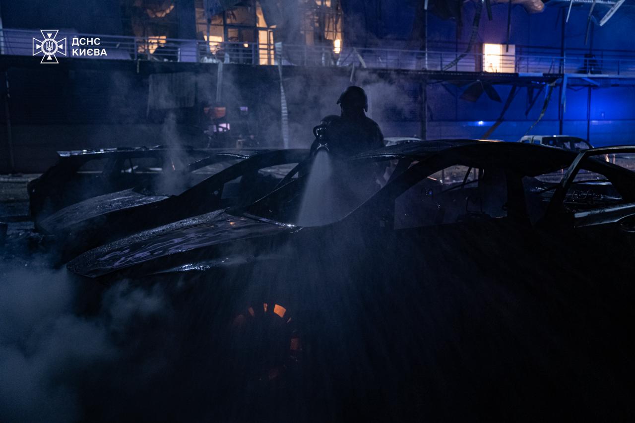 В Оболонском районе повреждены 9 жилых домов, возник пожар в квартире на последнем этаже 12-этажки. Частично разрушено перекрытие кровли. Загорелись 7 автомобилей.