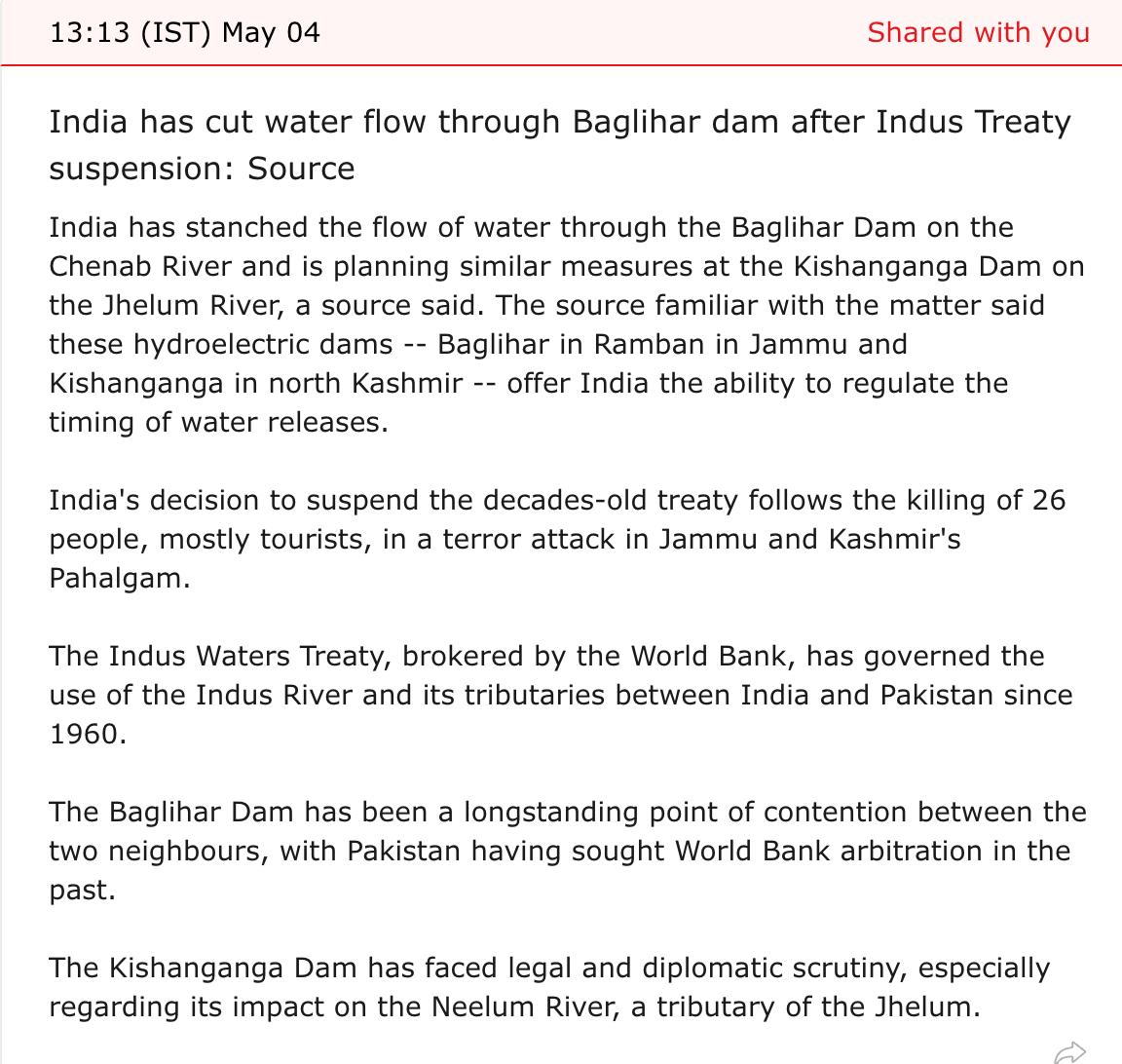 Нью-Дели также планирует перекрытие дамбы Кишанганга на реке Джелум. Оба эти сооружения позволяют Индии регулировать время сброса воды и являются предметами спора с Пакистаном, который зависит от этой воды.