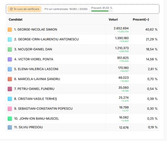 Таким образом глава партии "Альянс за объединение румын" возглавляет президентскую гонку и побеждает в первом туре выборов. На втором месте - провластный кандидат Крин Антонеску с 21,29% голосов.