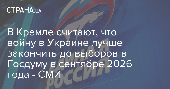В Кремле считают наилучшим сценарием с точки зрения подготовки к выборам в российскую Государственную думу, которые должны пройти в сентябре 2026 года, если война закончится незадолго до их проведения.