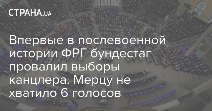 Бундестаг не смог утвердить немецким канцлером лидера консерваторов Фридриха Мерца. Это первый подобный случай в истории ФРГ после Второй мировой войны.