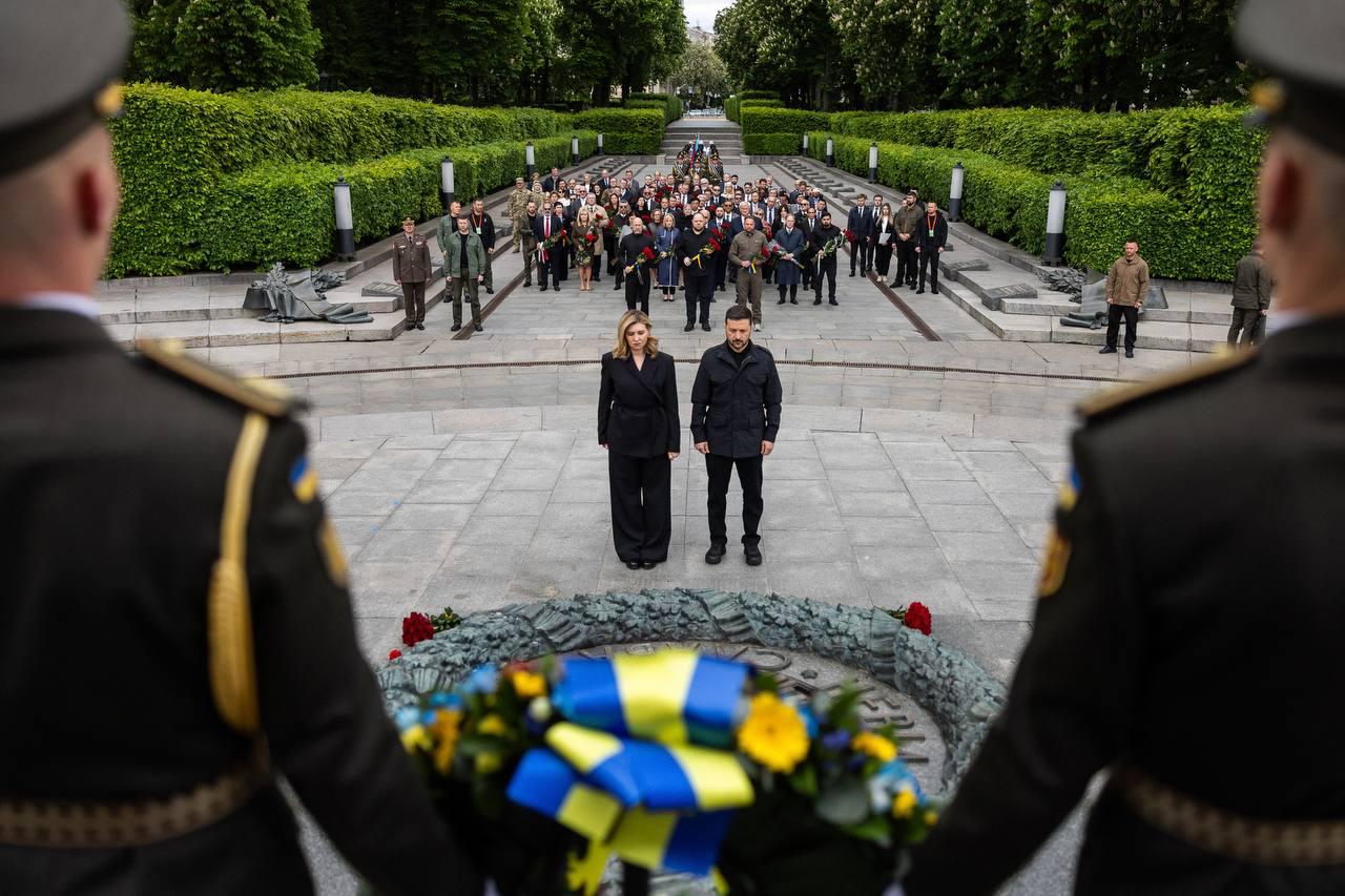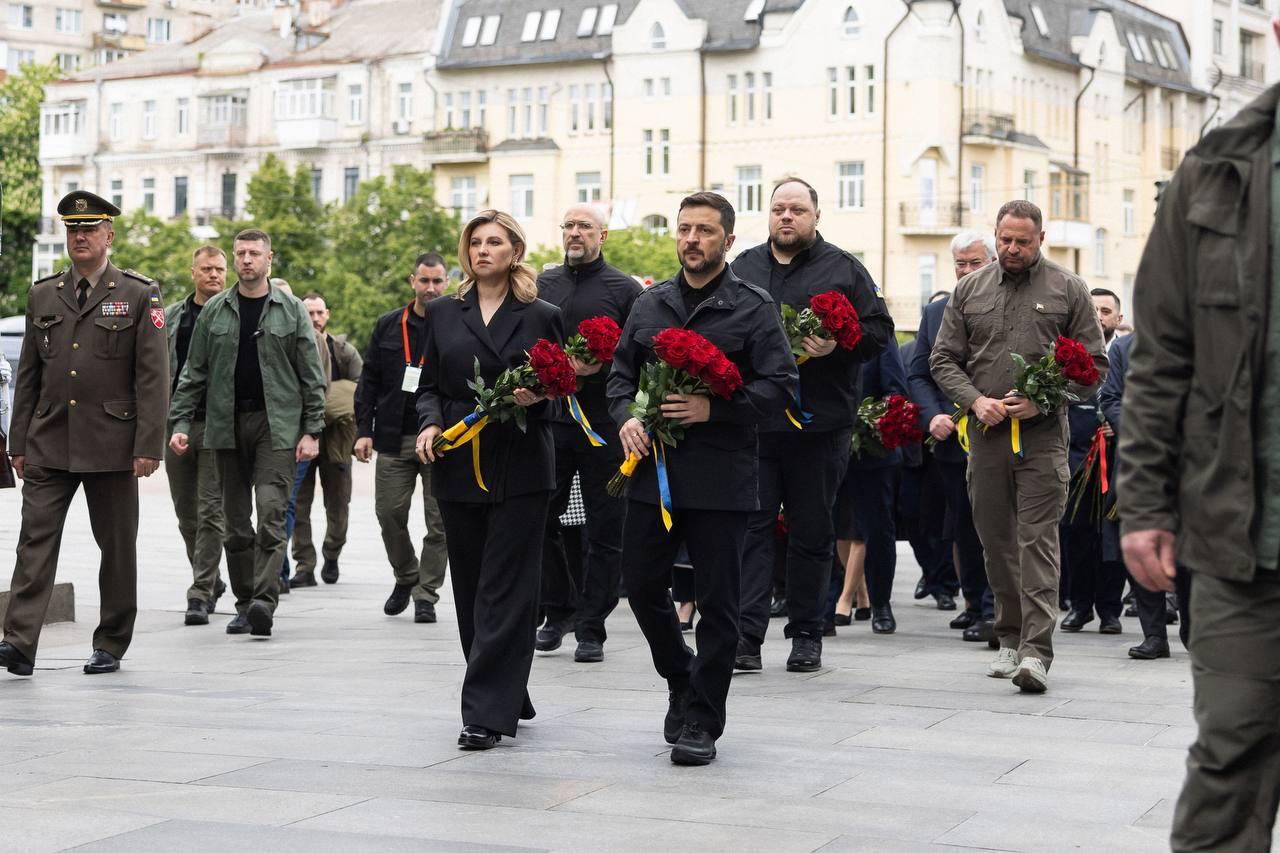 Также Зеленский и остальное руководство страны возложили цветы к Вечному огню в Киеве.