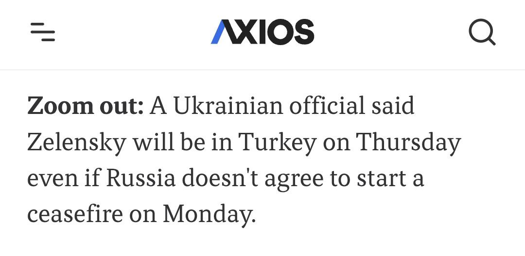 "Украинский чиновник заявил, что Зеленский прибудет в Турцию в четверг, даже если Россия не согласится начать прекращение огня в понедельник", - сообщает издание.