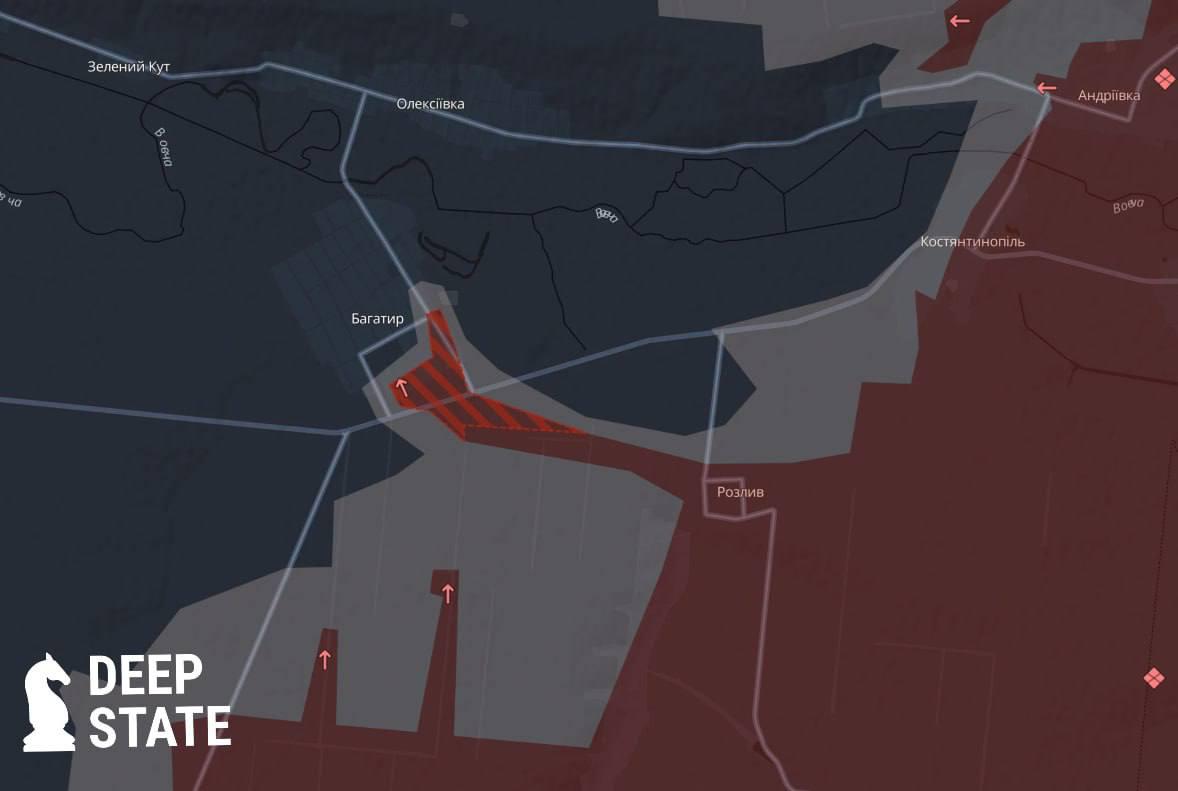 Там складывается "неблагоприятная обстановка", пишет Deep State. Россияне закрепились на юге села и накапливают пехоту, пытаясь прорваться в центр.