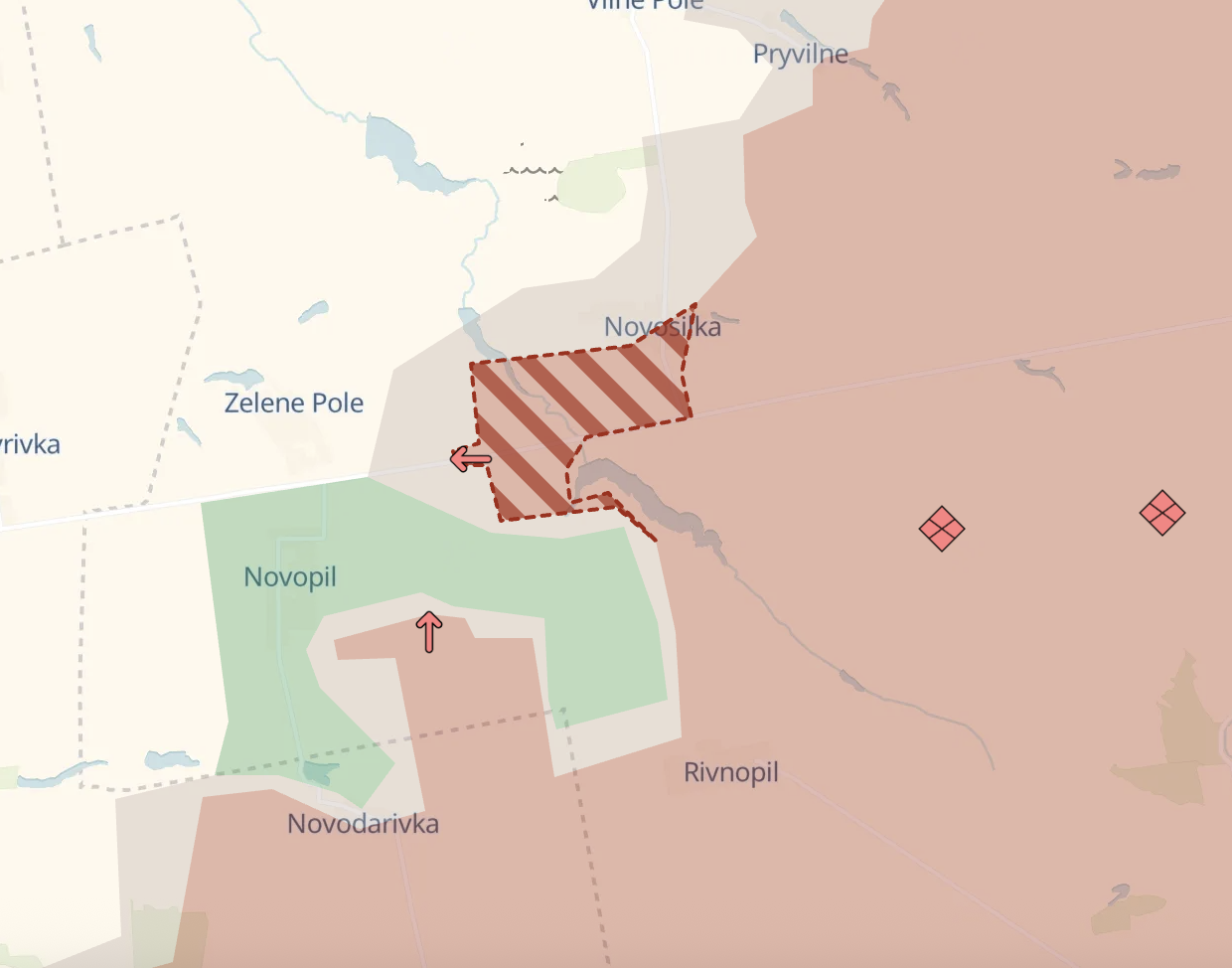 Россияне также подошли к Новой Полтавке, пытаясь взять её полностью под контроль, и практически оккупировали всю Новоеленовку. Неблагоприятная ситуация складывается и в Александрополе.