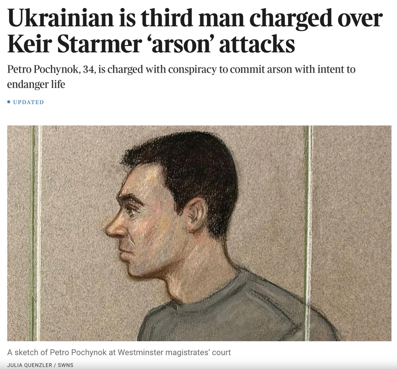 Третьим подозреваемым в поджоге дома и авто премьер-министра Великобритании Кира Стармера также оказался украинец.