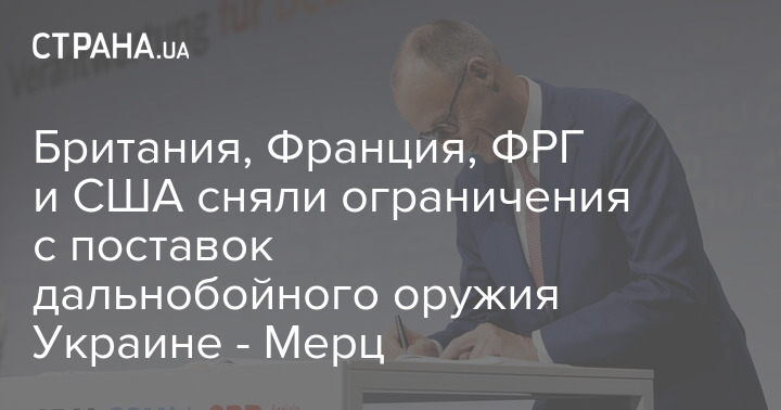 Канцлер Германии Фридрих Мерц заявил, что Британия, Франция, ФРГ и США сняли ограничения с поставок Украине дальнобойного оружия.