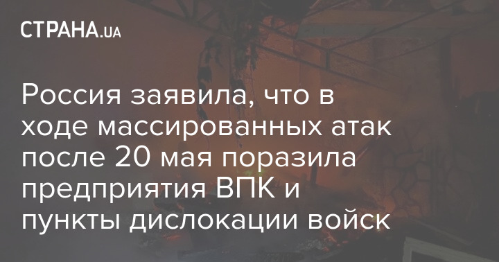 Россия заявила, что в ходе массированных атак после 20 мая поразила предприятия ВПК и пункты дислокации войск