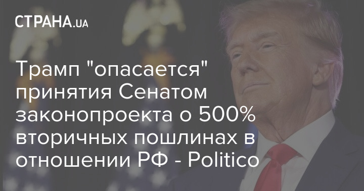 Президент США Дональд Трамп "опасается" принятия Сенатом законопроекта о 500% вторичных пошлинах в отношении РФ, поскольку не уверен, что это заставит Путина пойти на мирные переговоры, и "нервничает", что это может помешать любой будущей перезагрузке отношений между США и Россией.