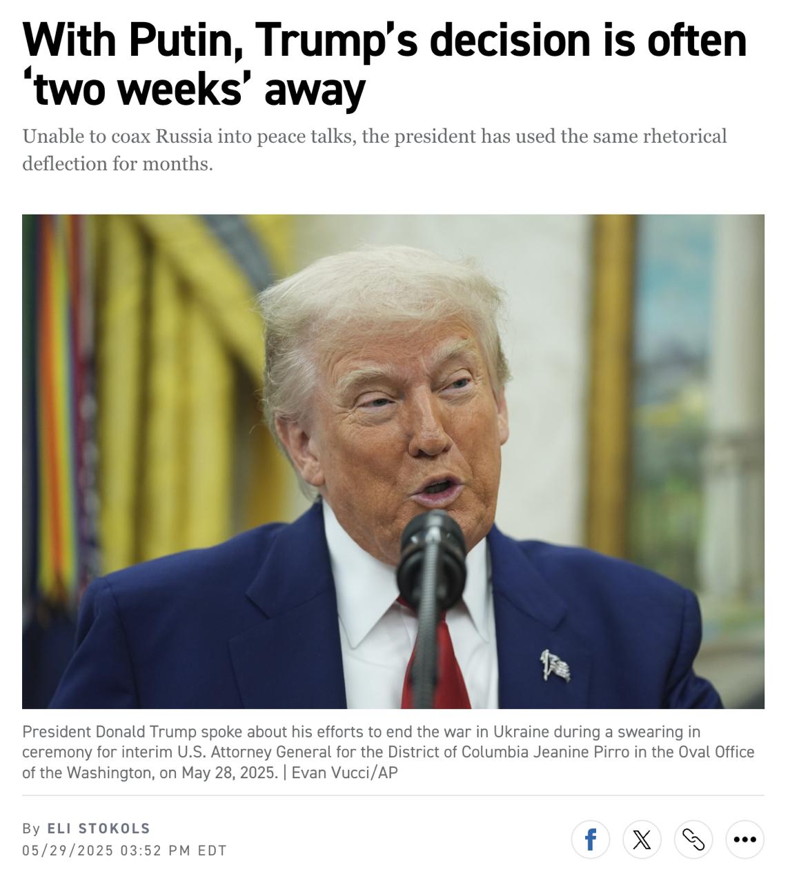 "Совершенно очевидно, что что-то удерживает его от того, чтобы оказывать большее давление на Путина. Возможно, он больше всего хочет перезагрузки отношений с Россией, даже больше, чем мира. Если он просто хочет закончить войну, чтобы заключить эти сделки (с Путиным - Ред.), то он, возможно, взвешивает стоимость отравления их потенциальных отношений", - заявил европейский чиновник.