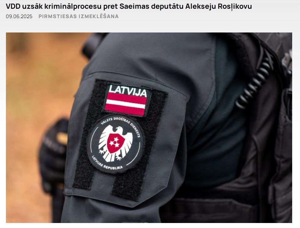 Рослякова подозревают "в оказании содействия государству-агрессору России в его действиях против Латвии и разжигании национальной ненависти и розни".
