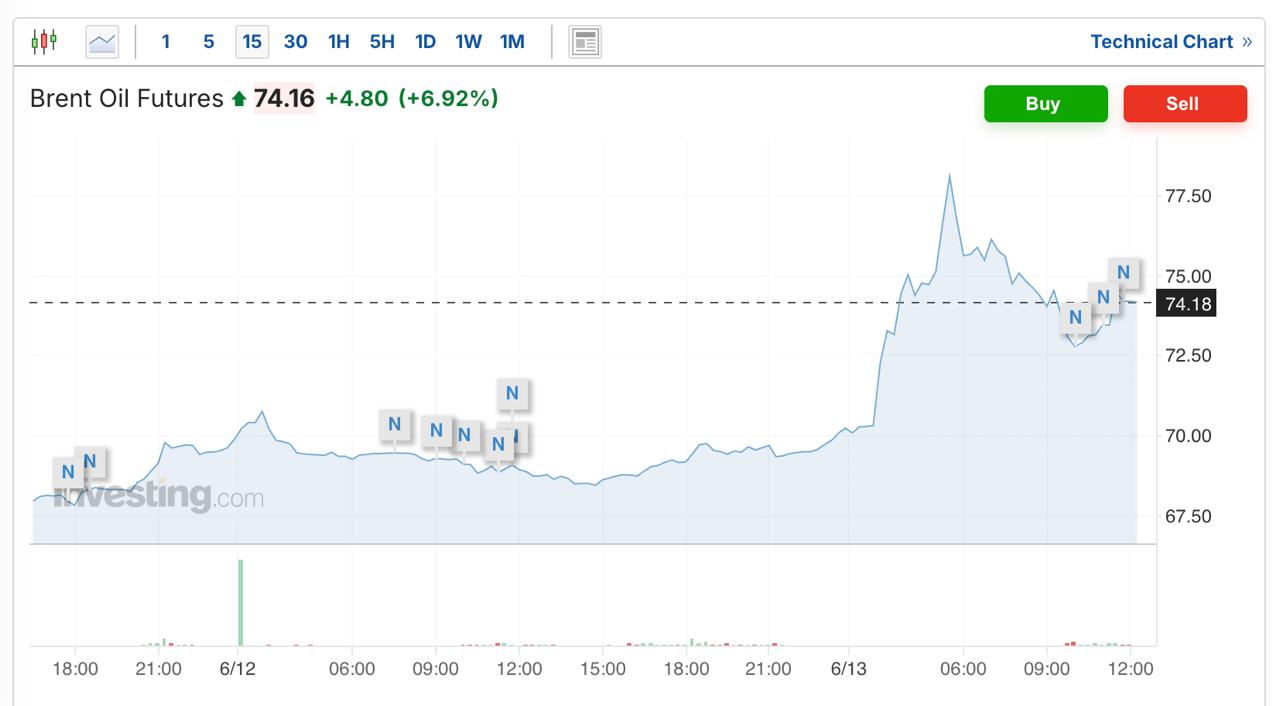 После удара Израиля по Ирану мировые фондовые рынки рухнули, а цены на нефть резко выросли. Об этом сообщает Reuters.