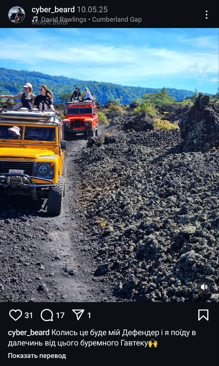 Один из создателей приложений для мобилизации в Украине отдыхает за границей и выкладывает фото об этом в своем Инстаграме.