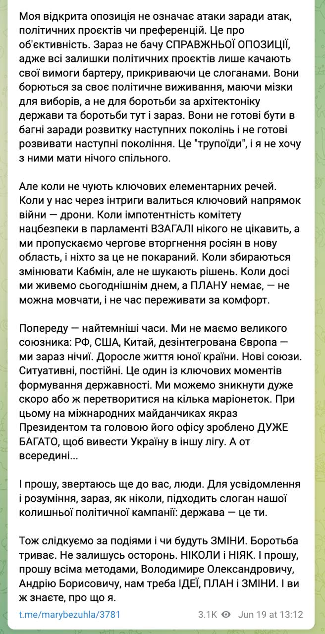 "Наши предшественники столетие назад были в похожей спирали истории, но не выпутались - развалились и были собраны заново Россией. Это может случиться и с нами. Впереди - самые темные времена. У нас нет большого союзника: РФ, США, Китай, дезинтегрированная Европа - мы сейчас ничьи", - пишет депутат.